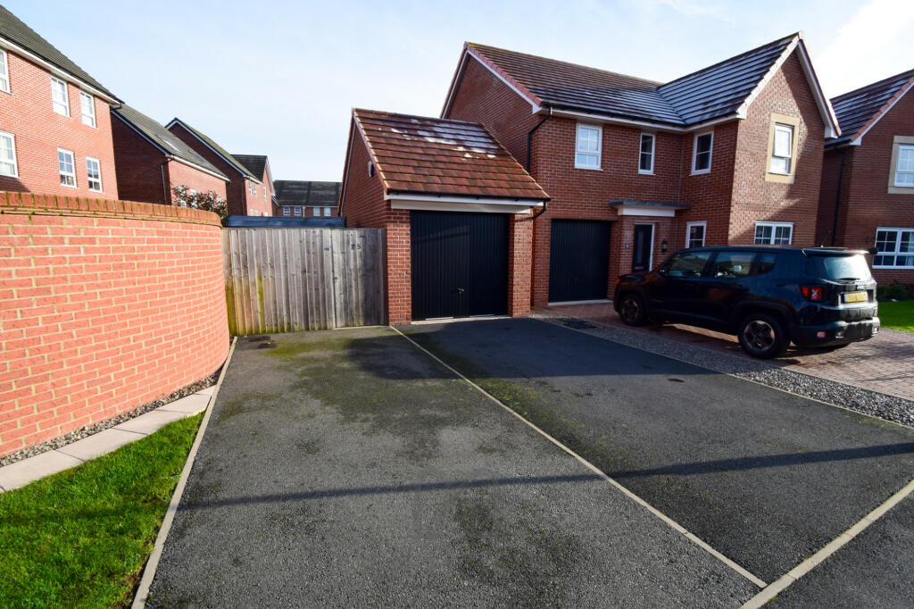 This four-bedroom, two-bathroom detached house located on Dakota Drive in Warton, Preston is presented in move-in ready condition. The property boasts a modern, stylish interior with a recently updated kitchen and bathrooms. The kitchen features an island and ample counter space and cabinets, the bathrooms are well-appointed and finished to a high standard. The interior design is contemporary and well-maintained.The home also includes a sizable rear garden, a patio, and a shed, providing substantial outdoor space. The property also features a double driveway and garage, offering excellent parking facilities. The location in Warton benefits from the relative closeness of primary schools and transport links though additional details are lacking. Nearby streets suggest a range of prices, however, properties of a similar type and standard tend to sell for around the listing price. While more data regarding precise plot size and detailed local pricing comparisons is required for a fully comprehensive evaluation, the property appears well-presented, in excellent condition, and situated in a convenient and reasonably desirable family-oriented location. The asking price is broadly consistent with other properties in the neighborhood, suggesting competitive market positioning. Overall, the property offers a considerable amount of appealing qualities to a potential buyer.