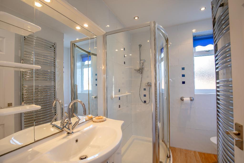 The property itself appears to be in excellent condition. The images show a well-maintained interior and exterior, with modern updates to the bathrooms and kitchen. There is no evidence of significant wear and tear or need for renovation. The property benefits from a well-maintained garden, adding to its overall appeal.
