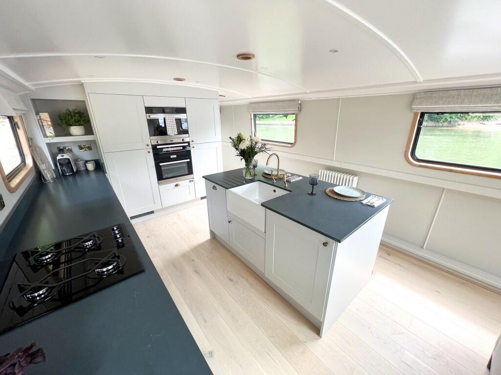 Ex-demonstrator vessel Nestled in a quiet, enviable location on the River Thames with easy access to Weybridge and Shepperton, D'Oyly Carte Island is an exclusive mooring where we can provide two or three bedroom stunning residential boats. Each one is beautifully handmade by master craftspeople