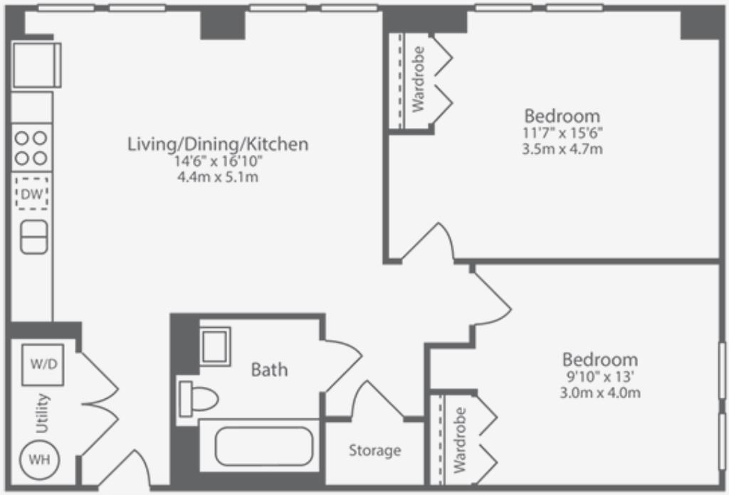 Enjoy modern city living in this fully furnished two bedroom, one bathroom apartment within a prestigious new development. Thoughtfully designed with generous proportions and clean finishes, the home offers a bright open plan layout with floor to ceiling windows and sleek laminate flooring throug...
