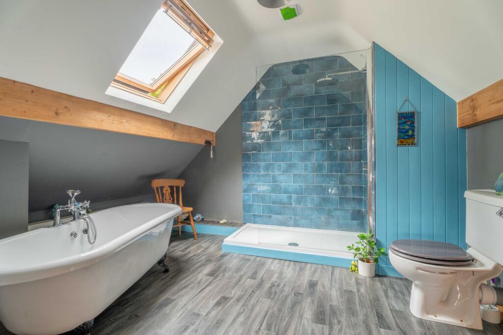 A truly stunning modern four bedroom home with versatile attic room, traditional style interiors utilising reclaimed wood, slate and stone throughout. Tucked away in a corner plot with ample parking.