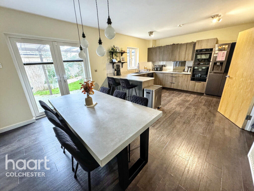 This is a well-presented four-bedroom semi-detached house in Great Bentley. The property benefits from a modern interior, a garden, and proximity to local amenities such as a primary school and train station. While the price is slightly above the local average, the condition and features of the property justify the valuation. The property includes off street parking and a garage.