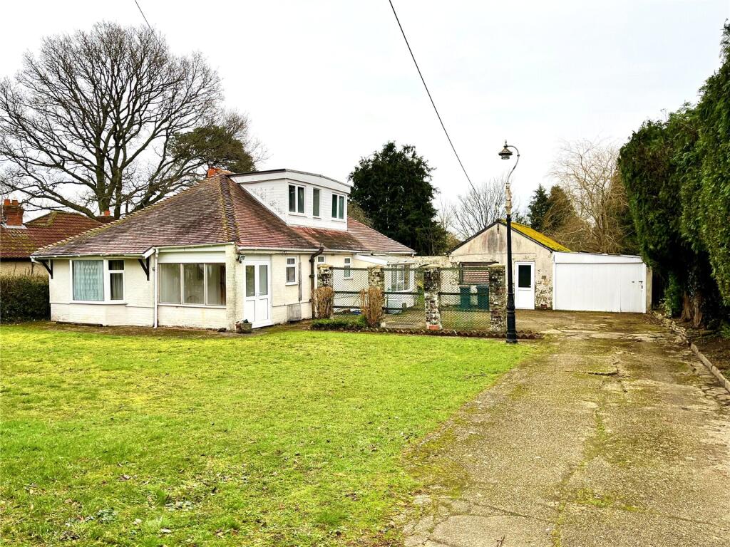 This three-bedroom bungalow in West Wellow, Hampshire, is situated in the picturesque New Forest National Park. The property benefits from a substantial garden and outbuildings, offering significant potential. However, the property is presented in a dated condition, requiring comprehensive modernisation and refurbishment throughout. The interior showcases outdated décor, fittings, and carpets, necessitating a significant financial commitment for renovation. The kitchen and bathroom are particularly outdated and would benefit from a complete overhaul. The large garden offers potential for enhancement.