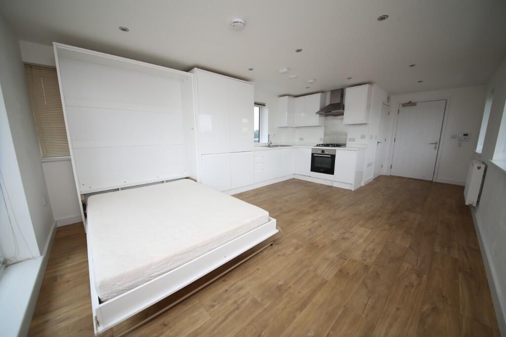 2017 Built fabulous penthouse studio apartment with wrap around balcony, integrated kitchen with washer/dryer, fridge, freezer, and dishwasher. Fitted/folding bed. High spec bathroom with shower over bath. Very close to town centre, open space and Stanford Le Hope C2C station. Available end August.