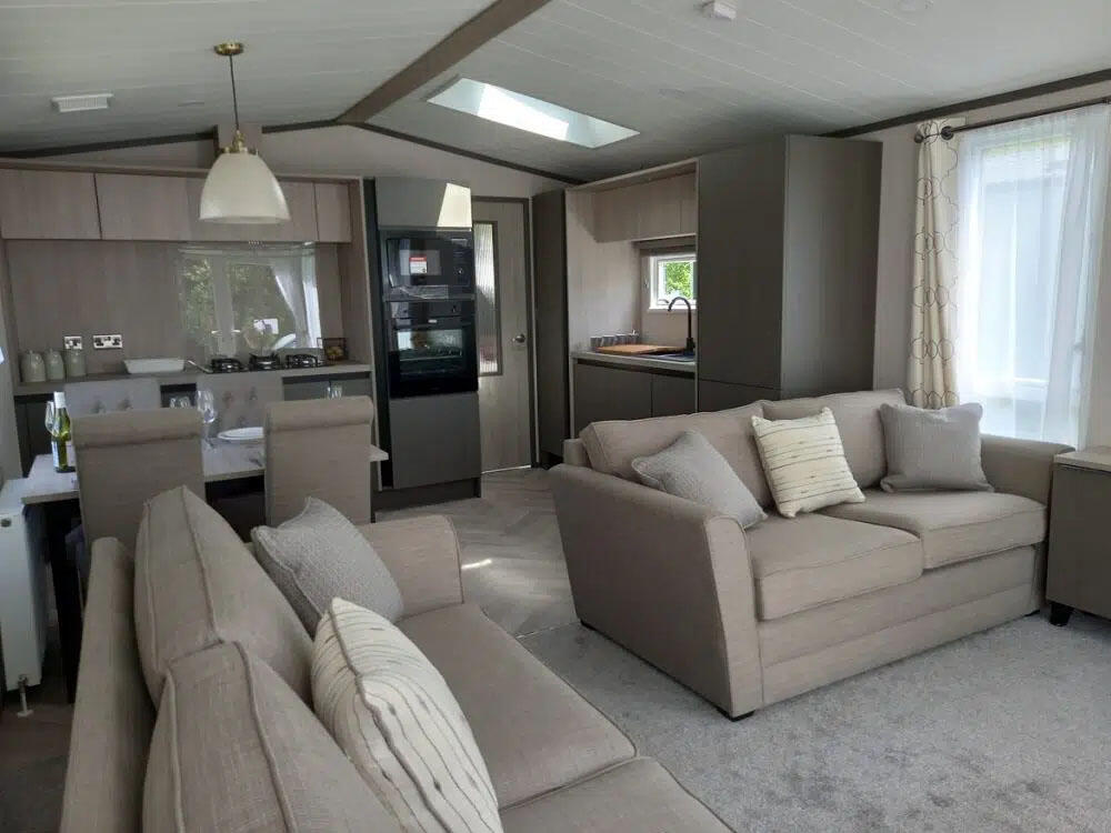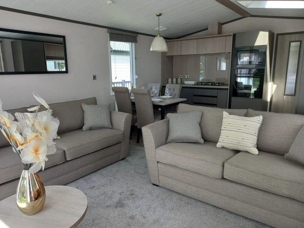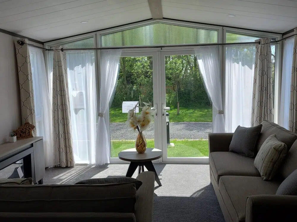 Contemporary, 2 bedroom holiday lodge on owners only park. Fully furnished with decking