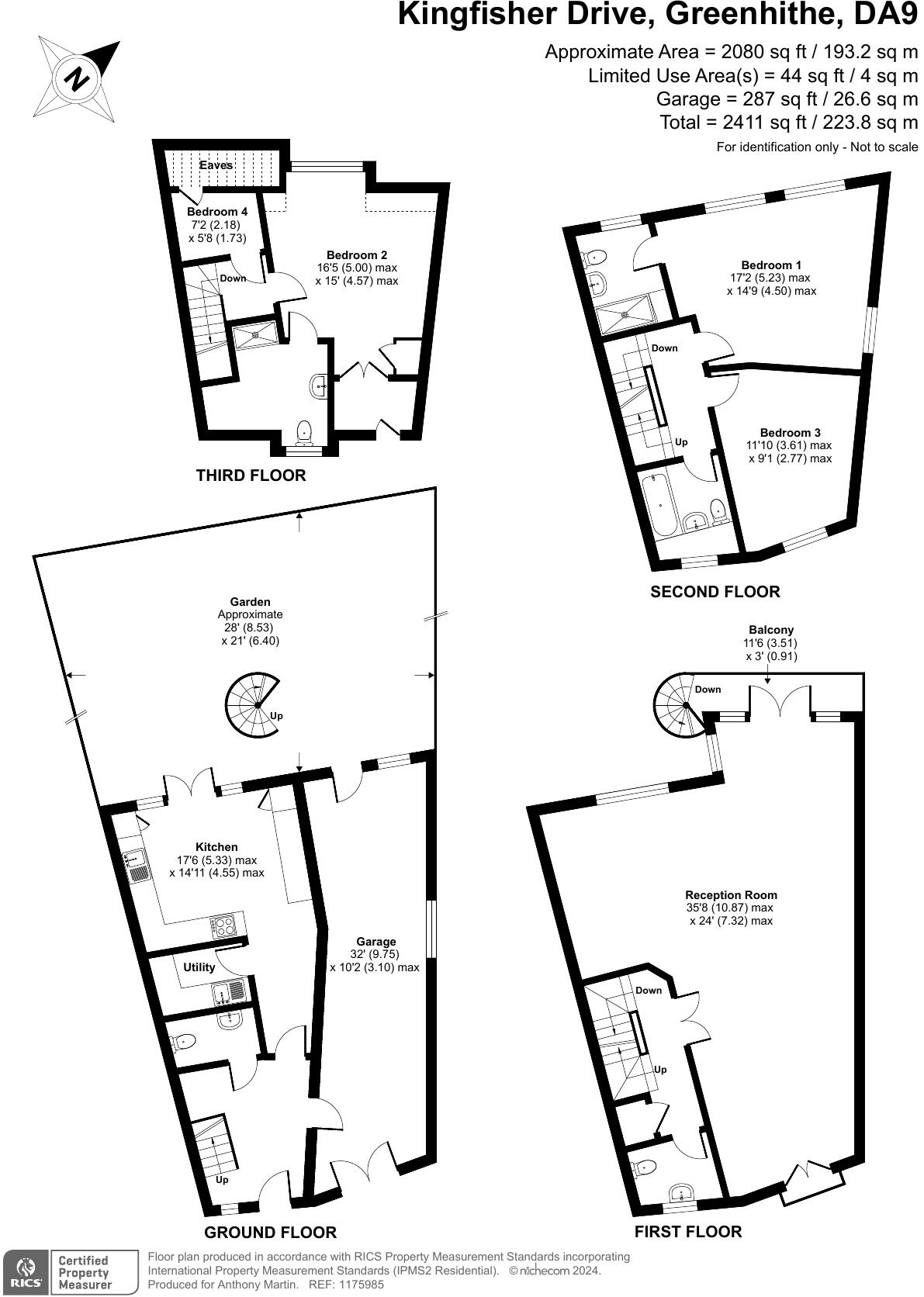 * CHAIN FREE * 185 SQUARE METERS FLOOR SPACE * POPULAR WATERSTONE PARK DEVELOPMENT * TOWNHOUSE SET OVER FOUR FLOORS * THREE DOUBLE BEDROOMS * TWO ENSUITES * FAMILY BATHROOM * TWO SEPARATE W/C * LARGE INTEGRAL GARAGE * BALCONY WITH SPIRAL STAIRCASE L...