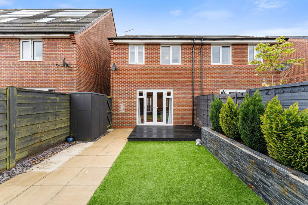 This property is a 3-bedroom semi-detached house located on Felthouse Drive in Leigh, Wigan. Based on the provided images, the property appears to be in excellent condition, recently renovated or newly built, with a modern kitchen and bathroom. The interior is well-presented and shows a high standard of finish. The property benefits from a good-sized rear garden with artificial turf, a decked area, and a substantial garden shed/office. The location is within reasonable proximity to several primary and secondary schools, all rated ‘Good’ or better by Ofsted. Several train stations are within a reasonable commuting distance. While the exact square footage isn’t provided, the list price of £230,000 seems reasonable when considering comparable properties in the area, although the absence of square footage data makes a precise price per square foot comparison impossible. The average price for similar properties in the area is £176,188, indicating that this property is at the higher end of the market, but not exceptionally so. The presence of the garden and modern features likely justify the higher price.
