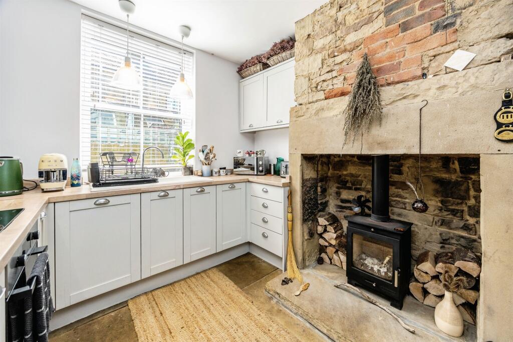 This terraced property is located in Triangle, Sowerby Bridge, West Yorkshire. It features 2 bedrooms and 1 bathroom, with a total square footage of 682. The property is listed at £160,000, equating to approximately £235 per square foot. The property is located close to several schools, including Triangle Cofe Vc Primary School and Ryburn Valley High School. Based on the photos, the property appears to be in good condition, with a modern kitchen and bathroom, retaining some traditional features such as the exposed stone fireplace. The property does not appear to have a garden.