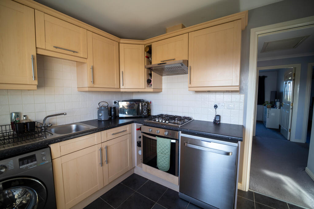 This is a two-bedroom apartment in Dunfermline, Scotland. The property is listed with Yopa. The apartment features a modern bathroom and a well-equipped kitchen. While specific square footage is unavailable, the apartment appears to be adequately sized for a small family or couple. The location offers convenient access to transportation and nearby schools. The asking price of £130,000 is competitive within the local market.