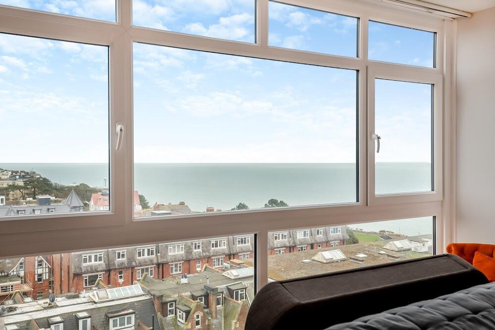 Panoramic coastal sea views with Balcony! Contemporary and spacious apartment in a prestigious block with 24/7 porter service.