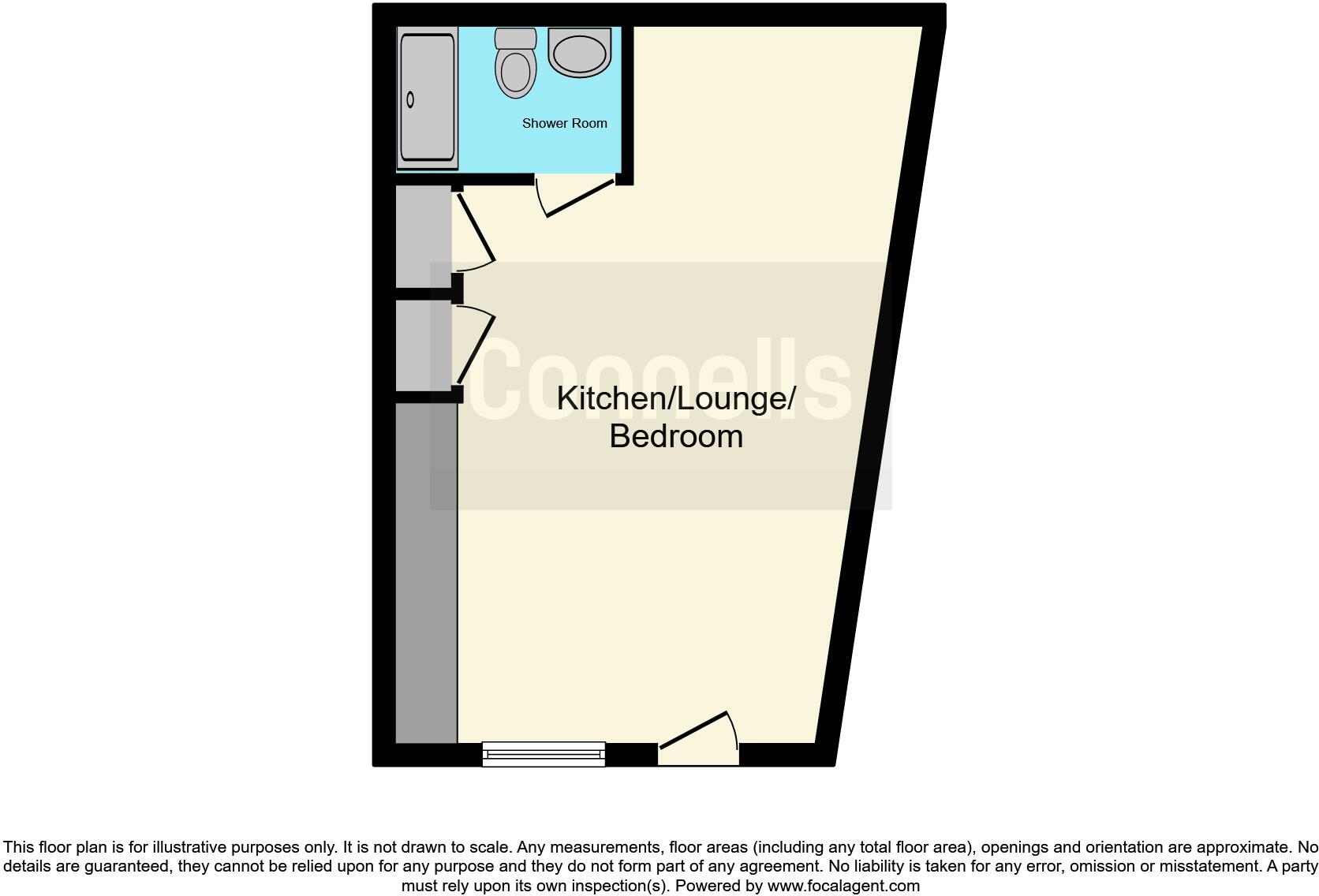 A ground floor studio flat comprising open plan living accommodation and a separate shower room. Benefiting from having UPVC double glazing and gas central heating as well as its own entrance and a parking space.