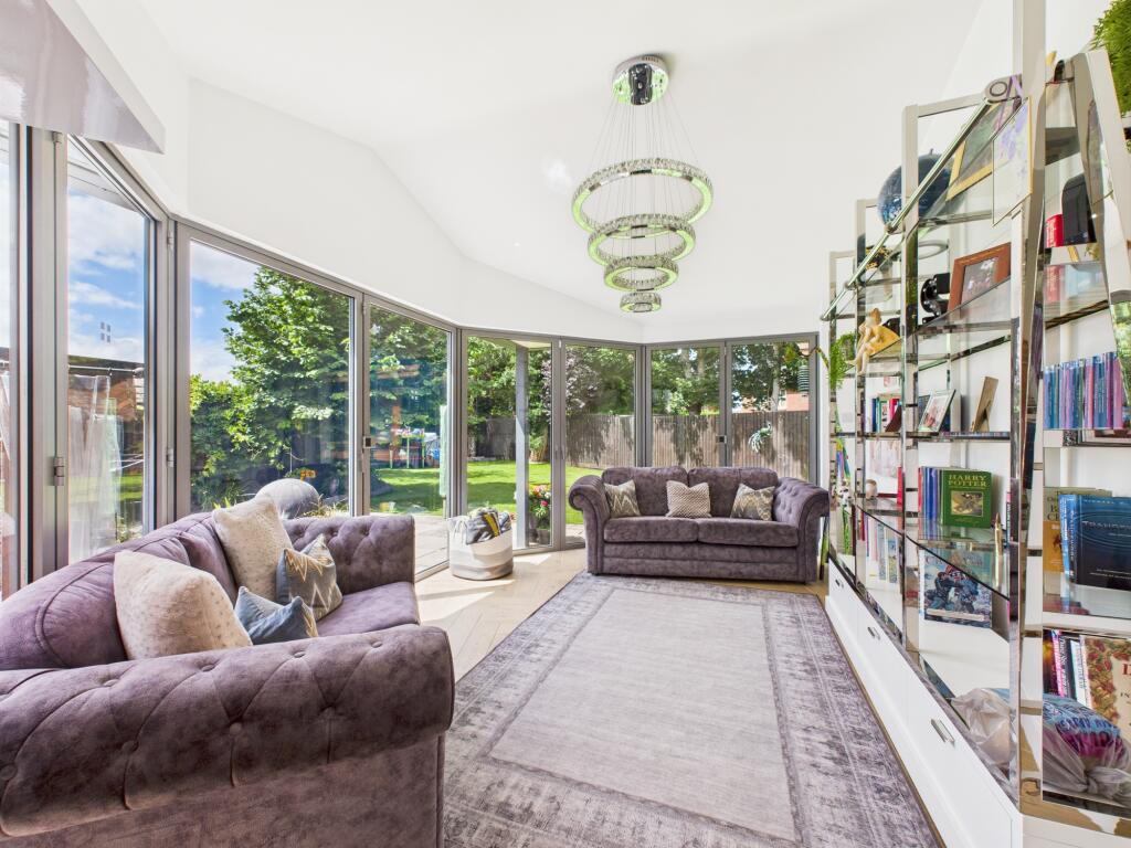 THIS BEAUTIFULLY PRESENTED 5 BED DETACHED HOUSE HAS BEEN SYMPATHICALLY STYLED TO CREATE A MODERN COTTAGE WITH A GLAMOROUS FEEL. BE PREPARED TO BE IMPRESSED AS YOU VIEW THE PROPERTY WHICH BOASTS ENTRANCE PORCH, HALLWAY, LIVING ROOM, DINING ROOM, SUNROOM/CONSERVATORY, KITCHEN, UTILITY, BOO...