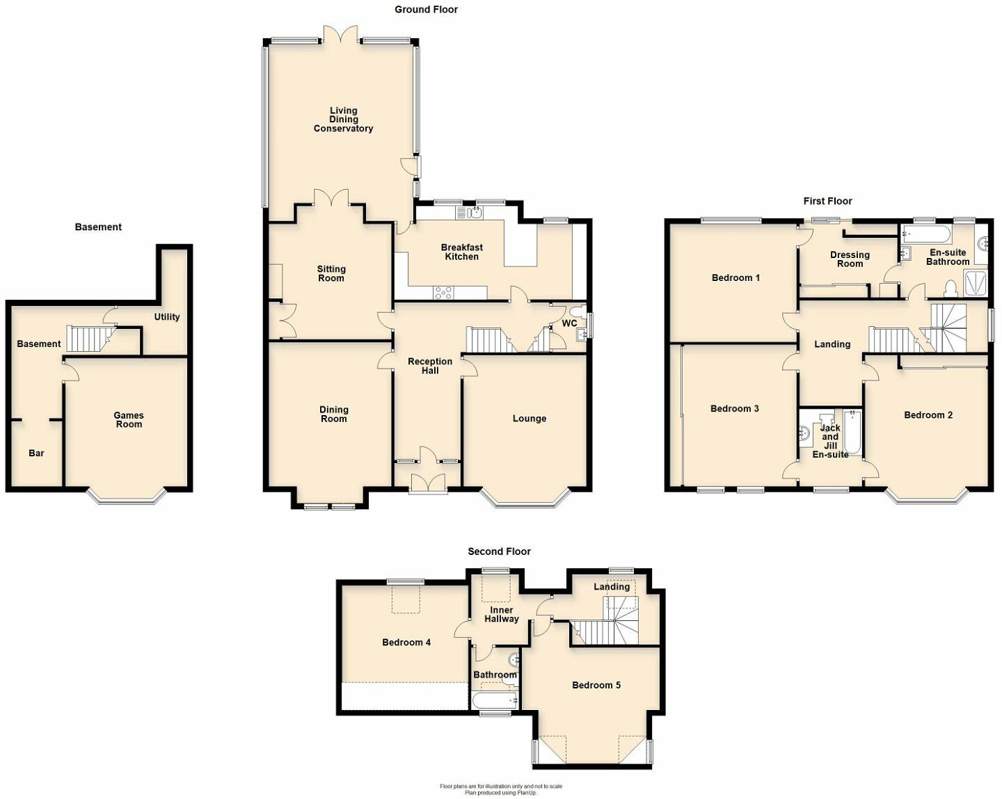 A five bedroom double fronted detached family house of considerable character and appeal, generous living accommodation over four floors, immaculate in presentation and established gardens being a definite feature.