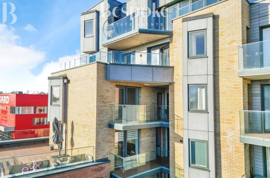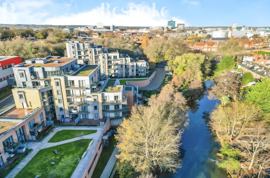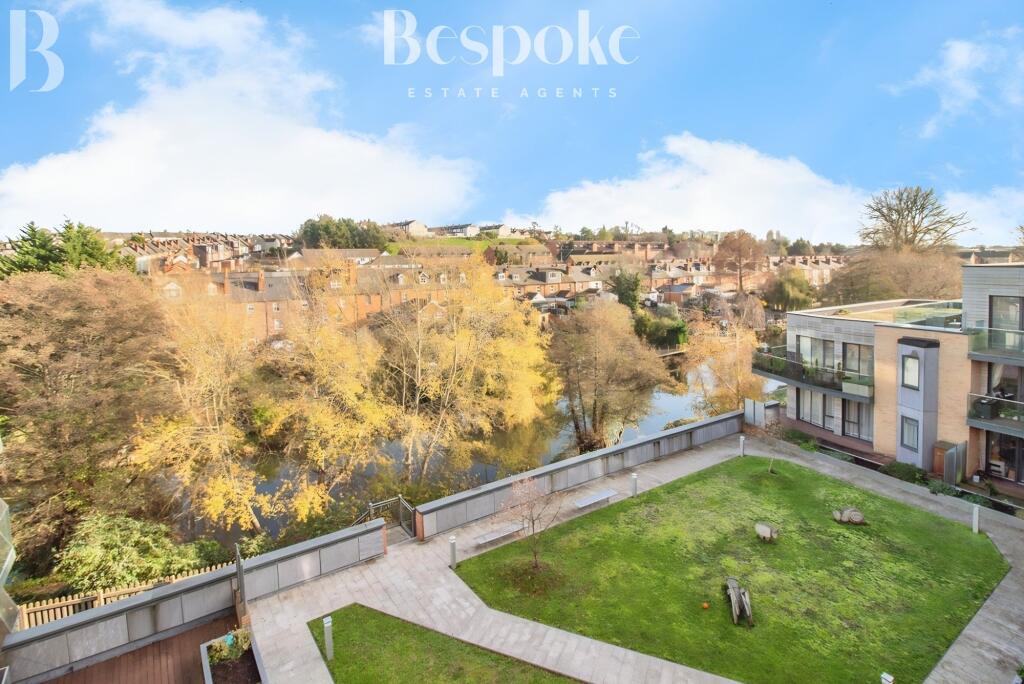 A beautifully bright 882 sq ft two-bedroom apartment in gated development featuring open-plan living, a private river-view balcony, contemporary en-suite, fully integrated kitchen, oak-effect flooring, excellent storage and secure undercroft parking. No onward chain.