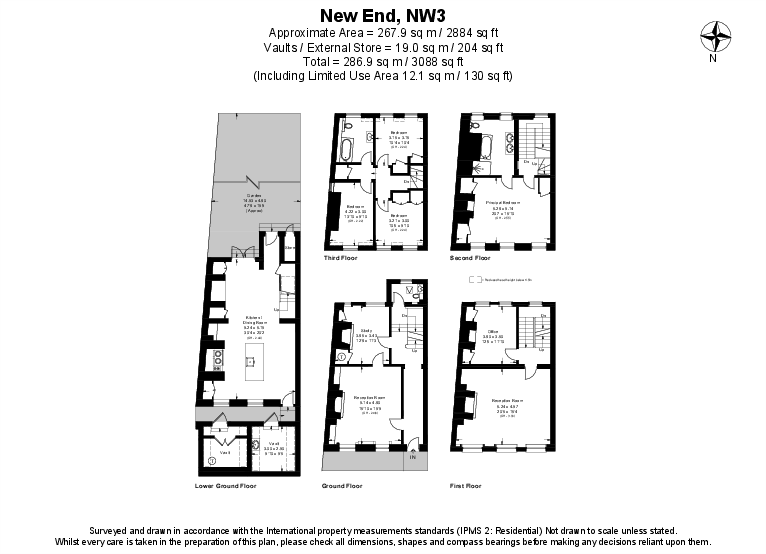 This is a substantial terraced property located in the heart of Hampstead Village. The house offers five bedrooms and two bathrooms, with a total living space of approximately 3,088 square feet. The property benefits from a well-maintained garden and is situated in a prime location close to local amenities, schools, and transportation links. The interiors are generally in good condition, with a modern kitchen and bathrooms, while retaining period features.