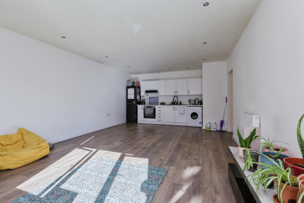 This is a one-bedroom flat located in Castle, Leicester. The property appears to be in good condition and benefits from its central location, with close proximity to the train station and local schools. The flat is of a modern style. The lack of private land may be a drawback for some buyers. The price seems reasonable when compared to the average price per square foot in the area.