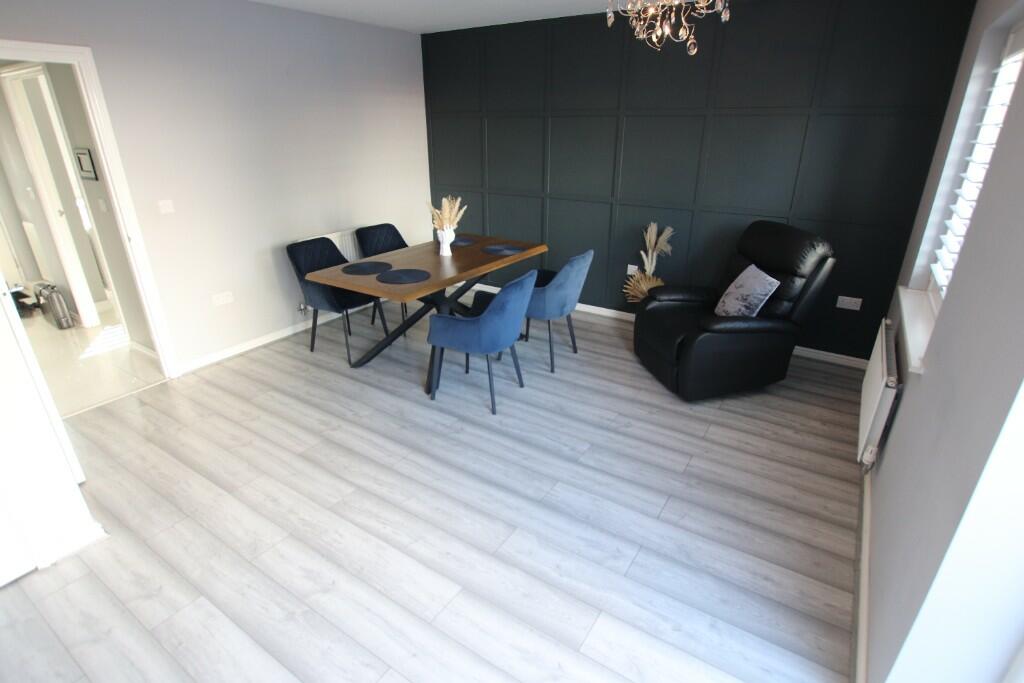 This property is located in Fonthill Gardens, Dartford, Kent, a residential area with nearby schools, transportation links, and amenities. The property itself is a three-bedroom, two-bathroom house. While the provided images show a modern interior with updated kitchen and bathrooms, the carpeting in the bedrooms appears worn, suggesting a need for some maintenance or replacement. The property includes a relatively small, enclosed garden with artificial turf and a shed. Considering the average house price in the area is £402,872 and the average price per square foot is £391, the listing price of £400,000 seems reasonable, especially given the modern updates to the property. However, the lack of square footage information for this property and the nearby properties makes a precise price-per-square-foot comparison impossible. More information is needed for a complete analysis.