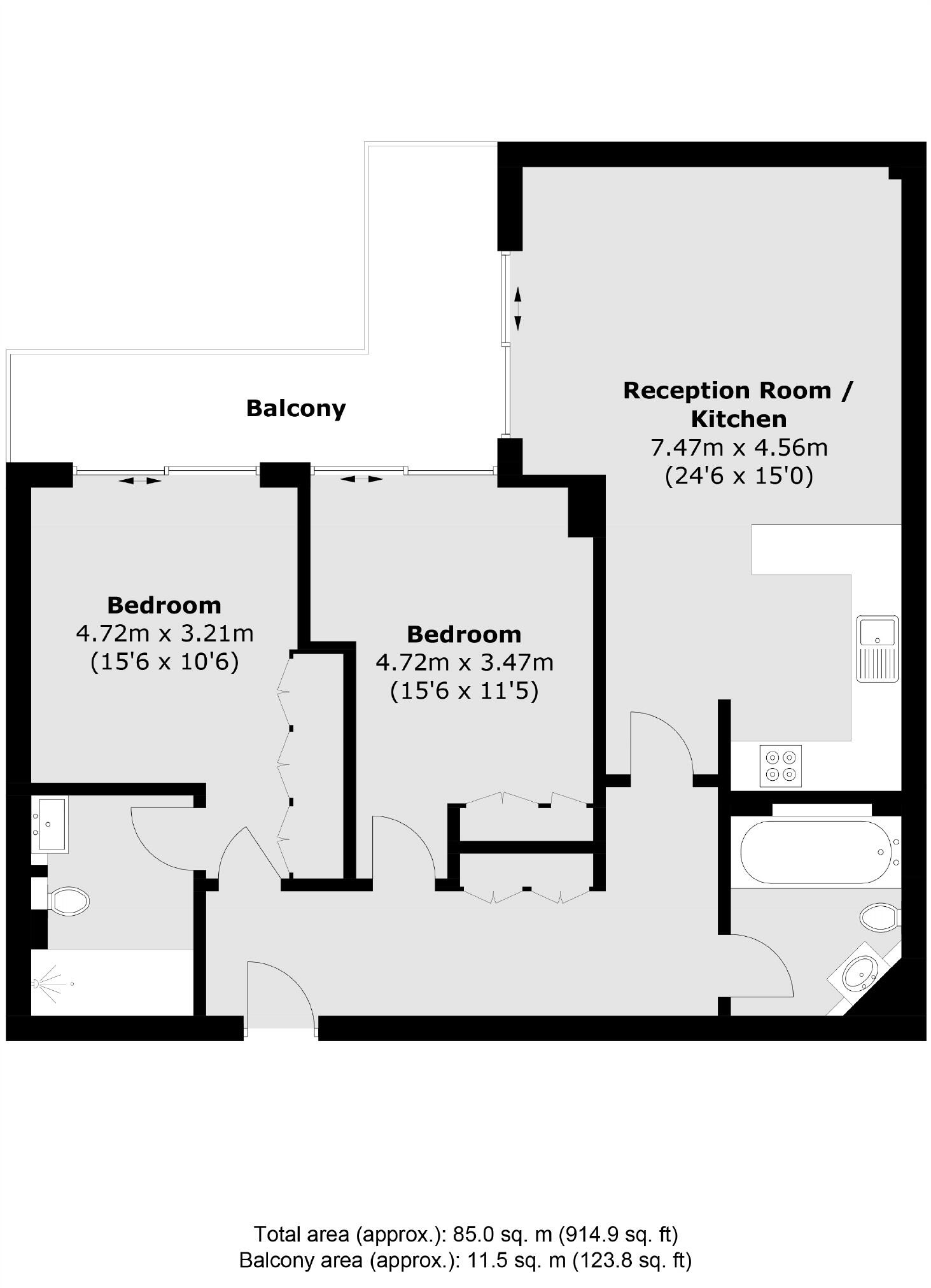 Two bedroom apartment situated in St Hilda's Wharf with private balcony overlooking the River Thames. This property has an open plan living room/kitchen and will be fully furnished
