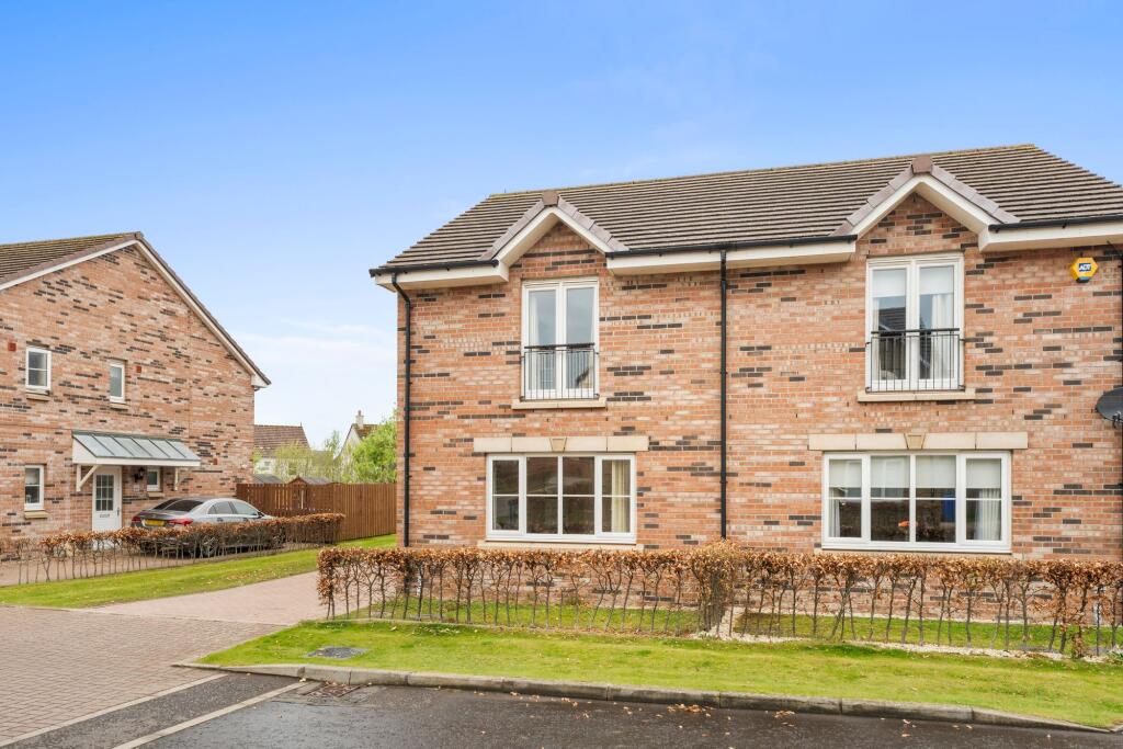 3-bed semi-detached villa in family-friendly location. Spacious lounge, stylish kitchen, en-suite master bedroom, family bathroom, cloakroom, driveway, and private gardens in sought-after Troon.