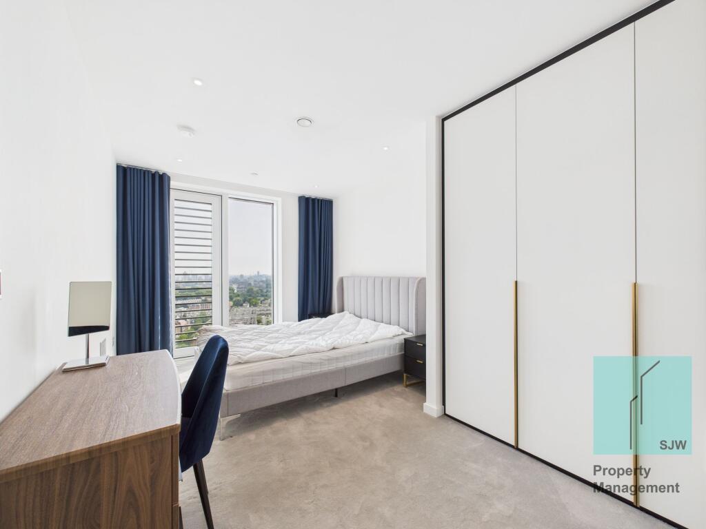 Luxury 1-bed on the 19th floor in Silk District. Stunning views, fully furnished, high-end finish, gym, cinema & concierge. Few mins to Whitechapel Station. Available Aug 8th—students welcome!