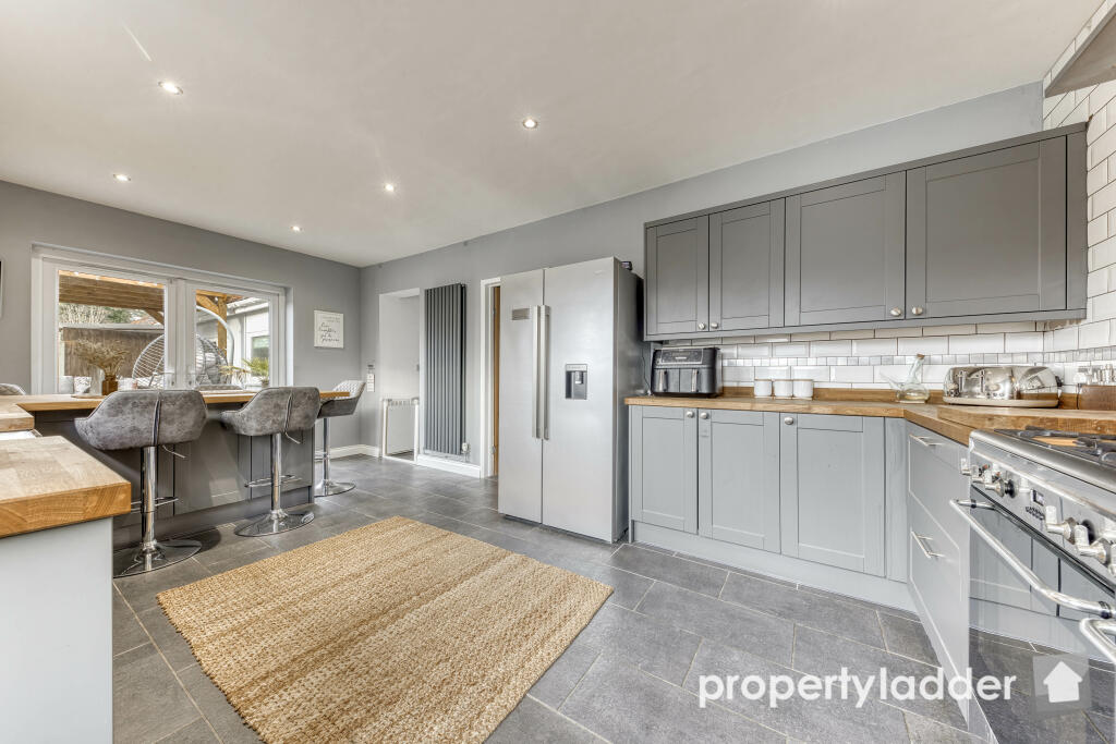 This stylishly extended property in a picturesque village offers stunning farmland views. It features four bedrooms, a contemporary kitchen, a utility room, an additional WC, and a gorgeous living room. Outside, enjoy two parking areas and a landscaped rear garden, perfect for entertaining