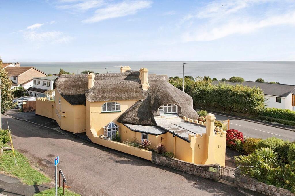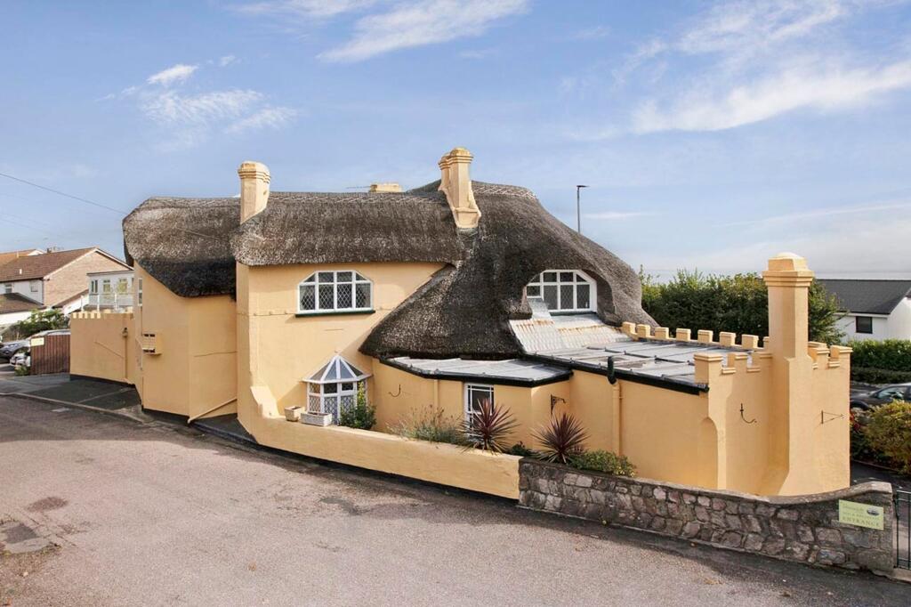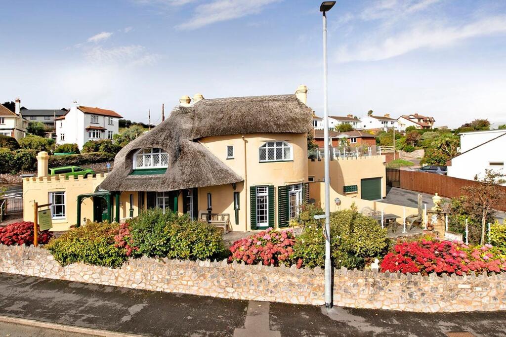 The property is a unique 5 bedroom, 4 bathroom detached house with a thatched roof, located close to the sea in Teignmouth, Devon. It appears to be in excellent condition, well-maintained and tastefully decorated, with modern updates to bathrooms and fixtures. The exterior features a patio area and a well-maintained garden. The location is desirable due to its proximity to the sea and transportation links. However, the list price is significantly higher than the average for the area. More information regarding plot size would help in determining the overall value.