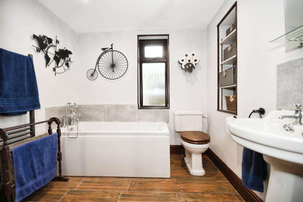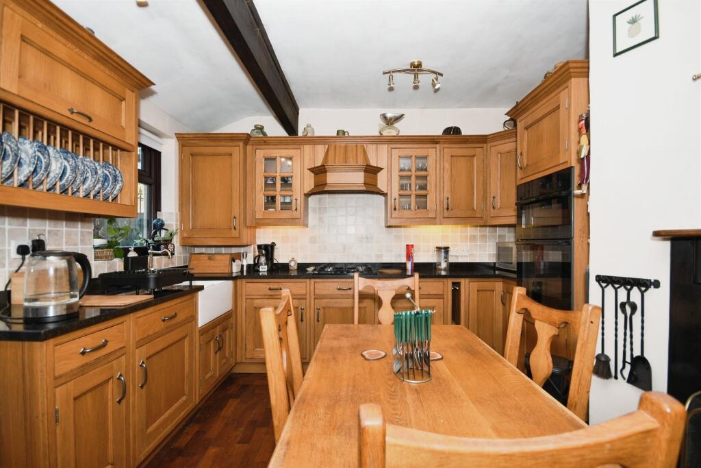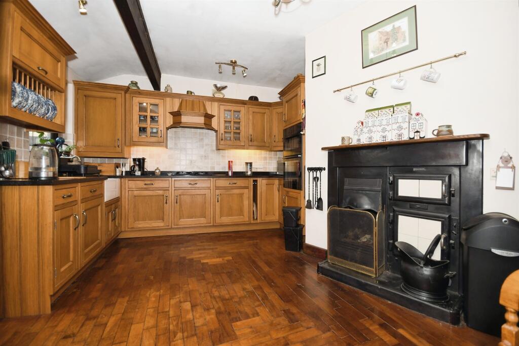 Immaculate and modern with arts and crafts references to Macintosh to include stained & leaded windows, open fires and an in-service open fired cast iron range. Excellent parking on a drive and easily managed well landscaped gardens with two generous out-buildings.