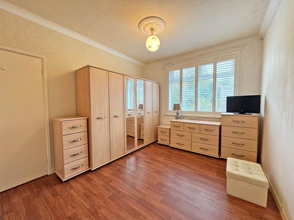 This is a detached bungalow on Manor Road, Shaw, offering two bedrooms and one bathroom within 1,150 sqft of living space. The property features a well-maintained garden with a shed and patio. While the house appears structurally sound, the interior design and bathroom fixtures could benefit from modernization. The location is favorable due to its proximity to local schools and transportation links. However, the asking price of £350,000 seems high compared to similar properties in the area, which may affect its value for money.