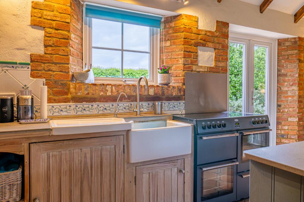 An individual & well-proportioned property displaying a wealth of charm & character; surrounded by open fields in a delightful rural setting, with a triple garage & other outbuildings