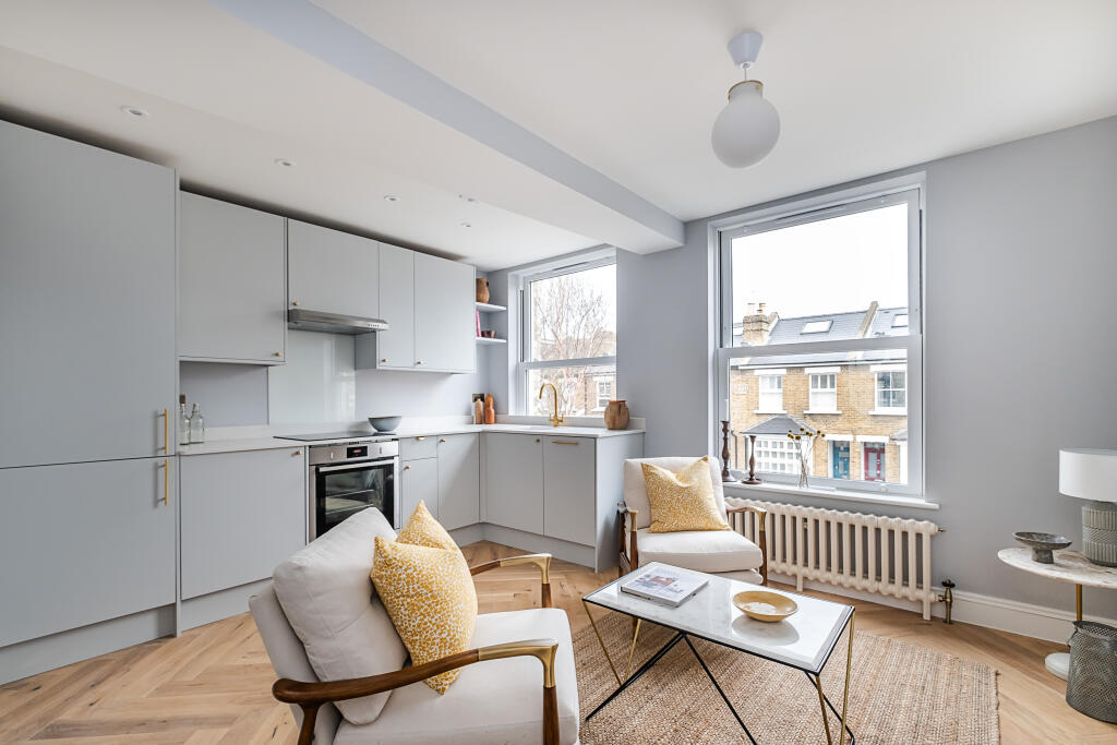 This property is a one-bedroom flat located on Church Road in Teddington, a desirable area in Richmond Upon Thames. The flat itself is modern and well-presented, having undergone a recent renovation. The images show a contemporary design with a new kitchen and bathroom. The location benefits from being close to Teddington station, providing easy access to London. There are also highly-rated primary schools nearby. However, the property lacks outdoor space, which is a common characteristic of flats in this area and may be a drawback for some buyers. The list price is significantly below the average price for the area, though this may be due to the smaller size of the property and the lack of outdoor space. Compared to similar properties on Church Road, the price appears competitive, though more data on square footage would be beneficial for a more precise comparison.