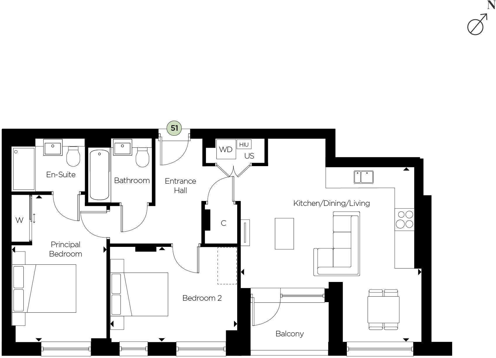 Apartment 51 benefitting from SECURE BASEMENT PARKING, BALCONY & access to residents COURTYARD GARDEN, UNDERFLOOR HEATING - VIEW TODAY!
