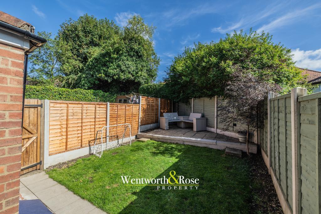 The property includes a garden, as shown in the provided images. The garden appears to be of a reasonable size, suitable for family use. Again, without precise dimensions, a definitive land score is difficult to provide.