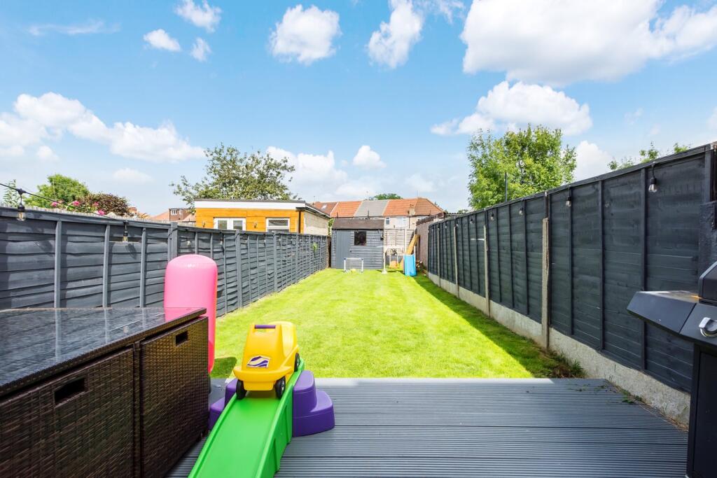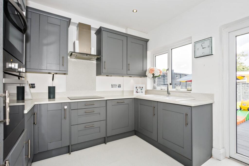 The property is a 3-bedroom terraced house located in Ashcroft Crescent, Sidcup, DA15 8NT. The list price is £450,000. The property appears to be in good condition, with a recently renovated kitchen and modern fixtures and fittings visible in the provided photographs. The garden is of a reasonable size, suitable for a family. The location is positive; it’s within proximity to several well-regarded schools (Days Lane Primary School, Marlborough School, and others) which all received a ‘Good’ Ofsted rating. Multiple Southeastern train stations are also within a reasonable commuting distance, providing good transport links. Considering the average house price in the area is £498,227 and the average price per square foot is £551, the list price of £450,000 for this 851.43 sqft property seems reasonable, potentially even slightly below average given its apparent good condition and location. However, the lack of plot size information and the significant variation in prices of nearby properties (ranging from £172,000 to £550,000) makes a definitive statement on value difficult. More information on the plot size and a more detailed comparison with directly comparable properties would be needed for a more precise valuation. Based on the images, the property appears modern with a recently updated kitchen. There is a garden present.