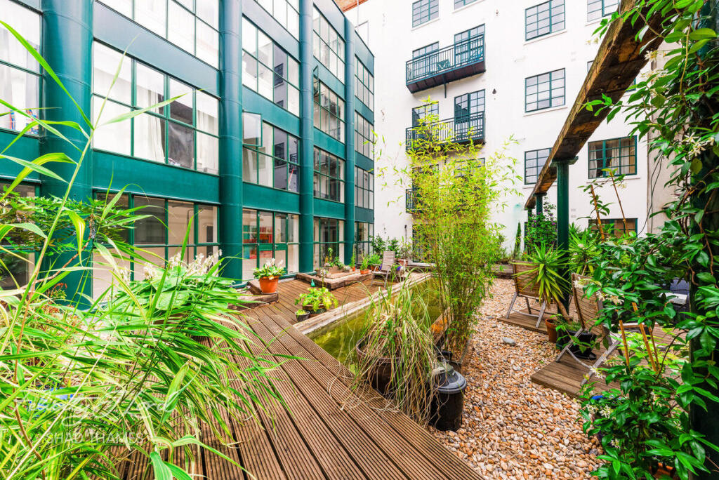 A rare chance to purchase a stunning loft-style Grade II listed warehouse apartment found within this sought-after industrial warehouse conversion. This fabulous property offers views over the Japanese water garden, as well as a large balcony, high ceilings, communal roof terrace and secure parking