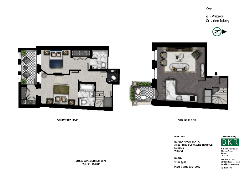We are delighted to offer a newly refurbished exceptional 1,035 sq ft apartment arranged across the Courtyard and Ground Floor levels of a boutique super prime building.The apartment is fully furnished with two Bedrooms and 2 Bathrooms.