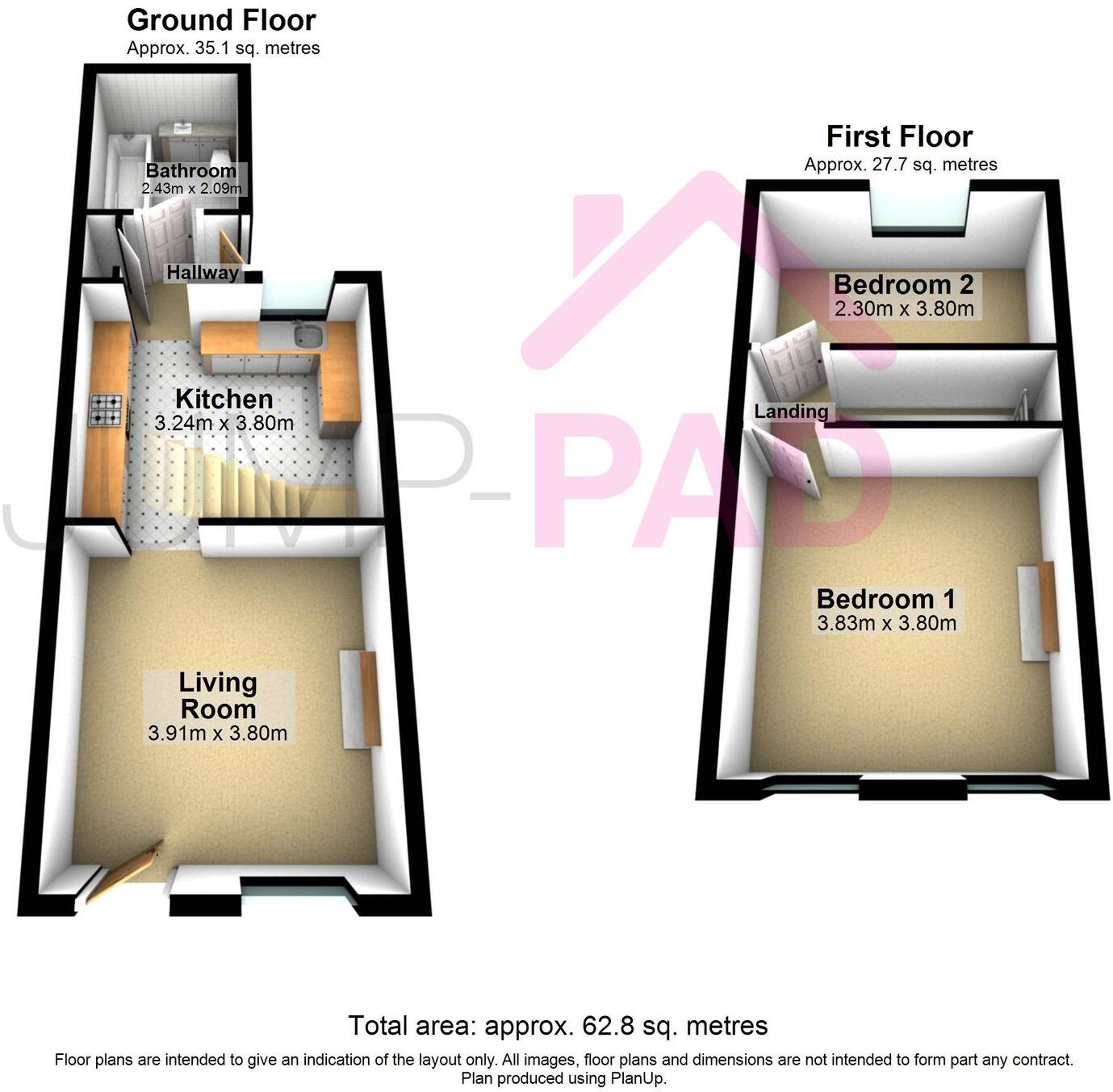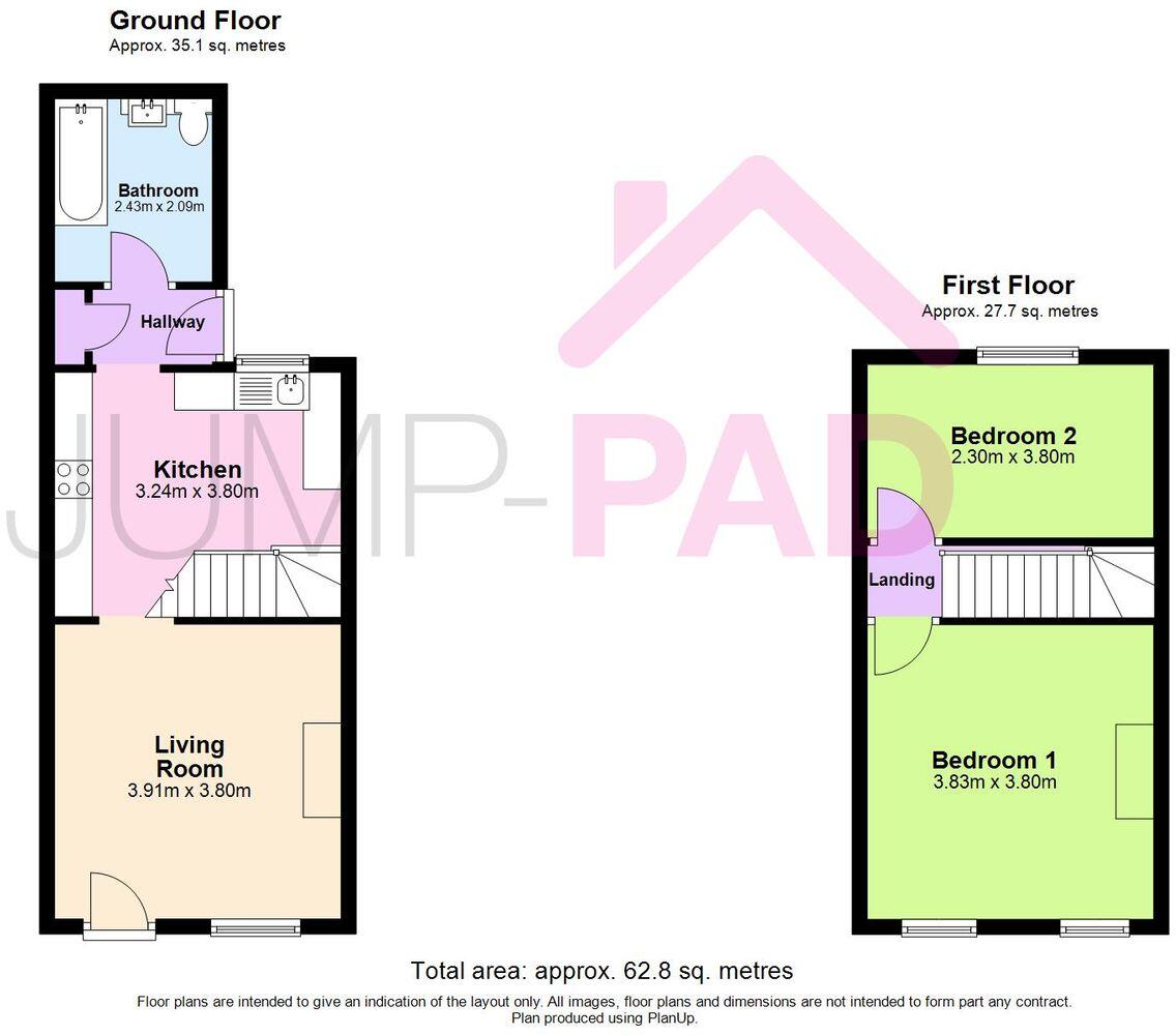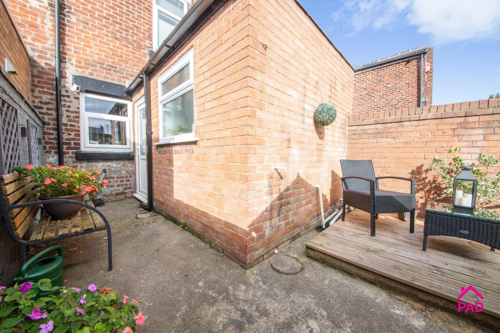 A well-presented 2-bedroom end-of-terrace property with a spacious living room, a modern kitchen, an updated bathroom, two generous bedrooms, off-street parking, and a private courtyard garden.