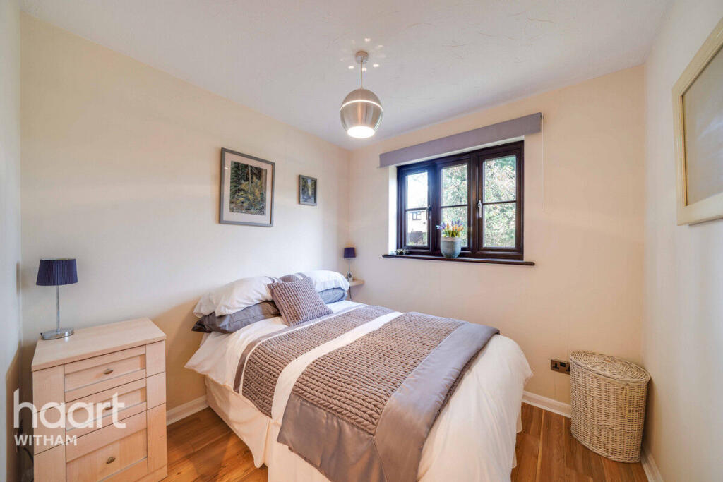 This is a two-bedroom apartment in Witham, Essex. The property appears to be in good condition, featuring a modern kitchen and bathroom. It also benefits from a garden. The location offers a balance between suburban and rural living, with proximity to schools and transportation links. The asking price seems fair compared to other properties in the area, making it an attractive option for potential buyers.