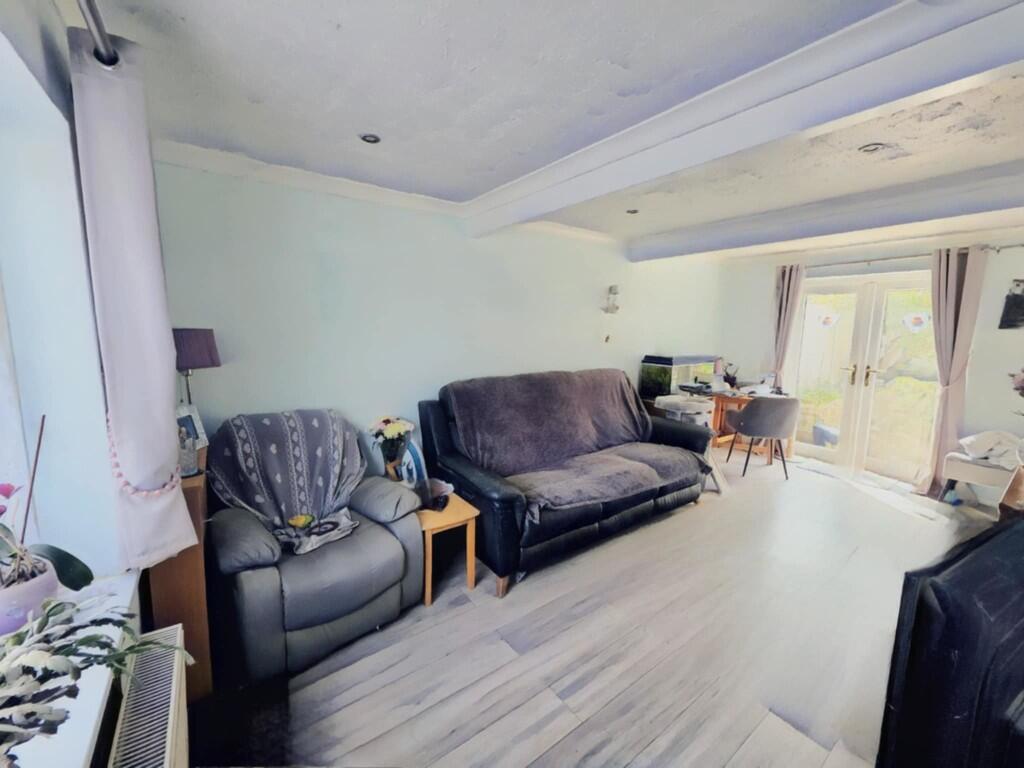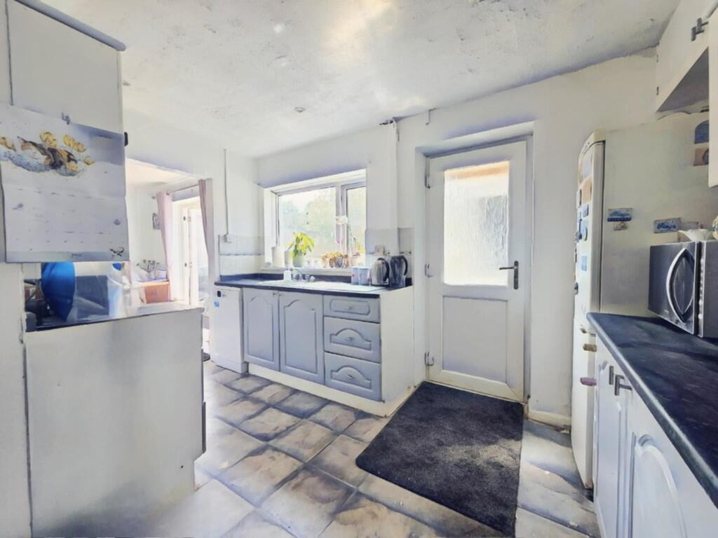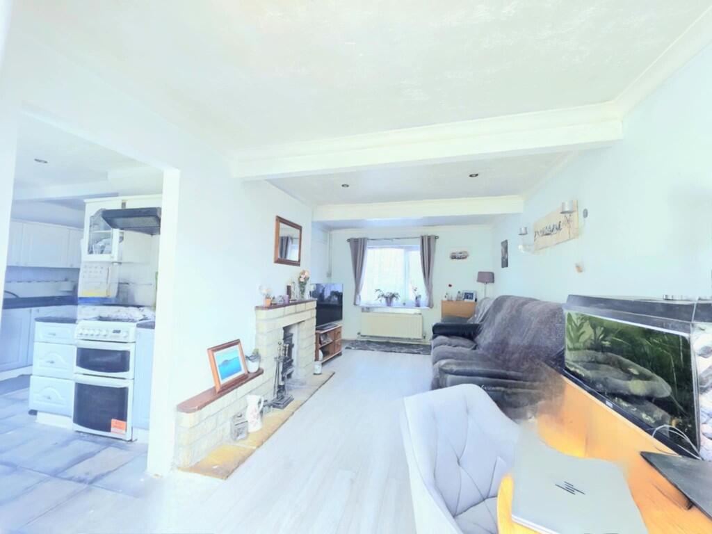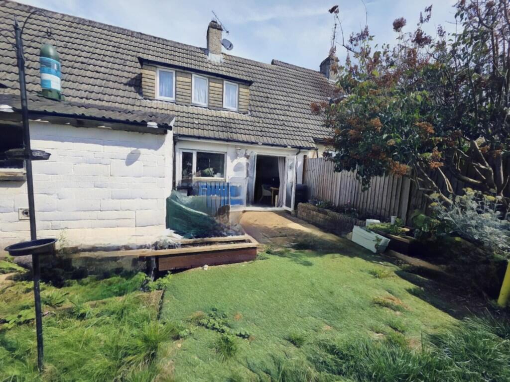 Spacious design ex-local authority mid terraced house with two large bedrooms and an extra large garden. Sought after rural hill top village with the usual amenities. Requires some updating. Gas central heating. Double glazing. Patio doors. Large off road parking area in front of property..