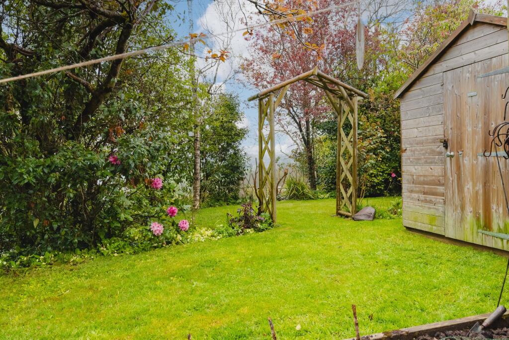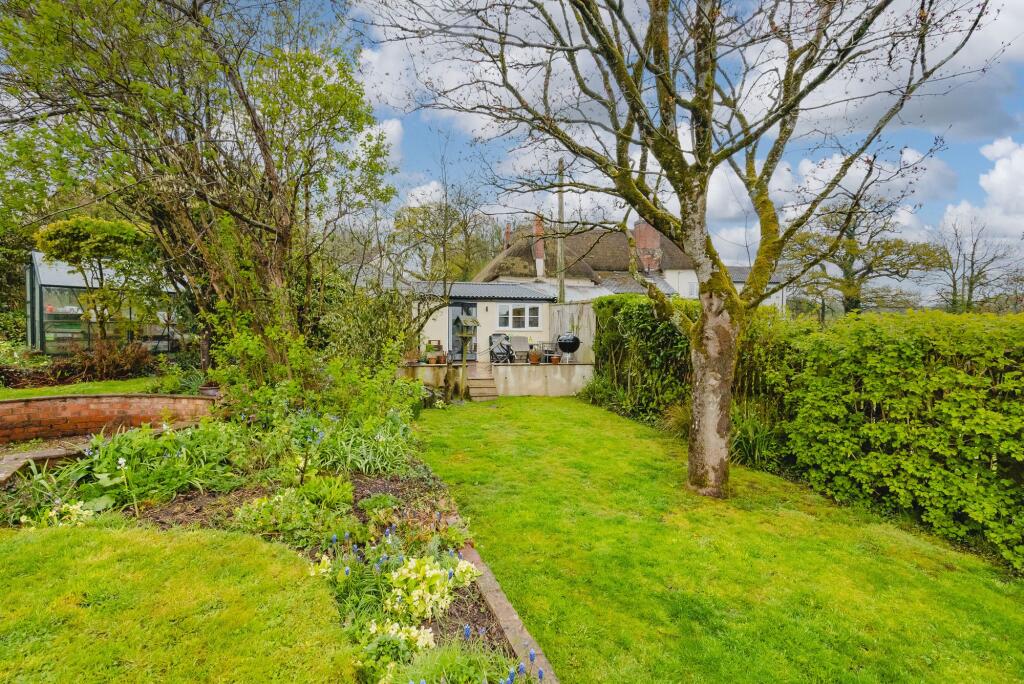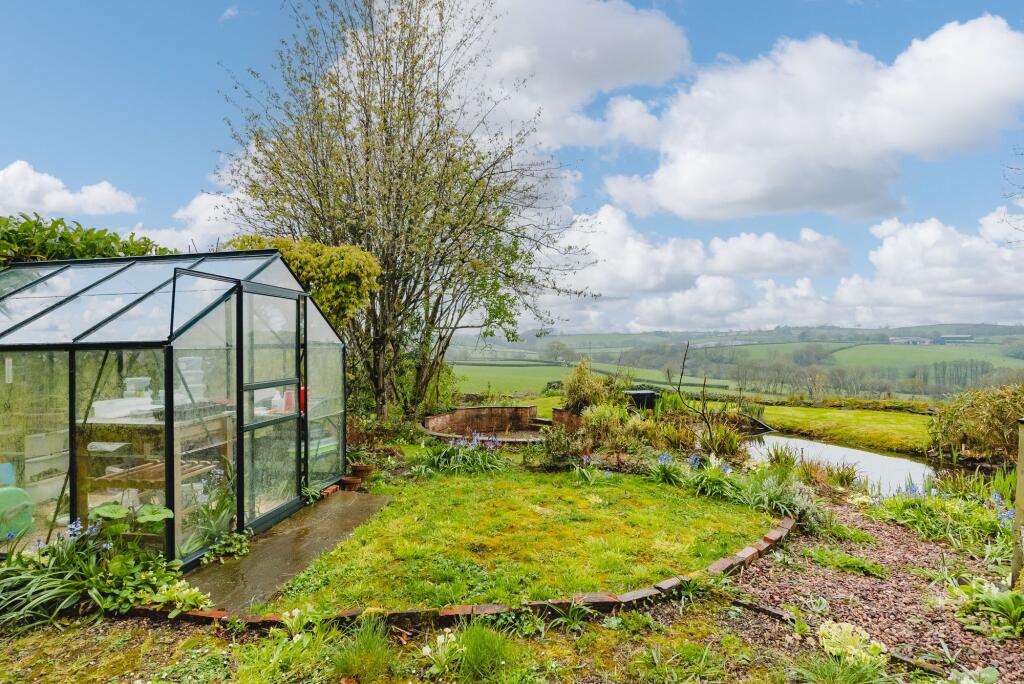 Land: The property includes a garden of a good size. The images show a variety of mature plants and landscaping features, including a greenhouse and pond. The garden appears well-maintained, offering a pleasant outdoor space.
