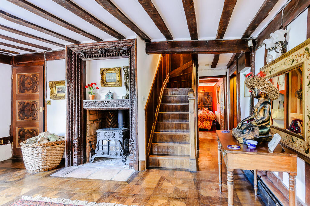 This property is a charming period house located in Mendham, a village in Mid Suffolk. It boasts six bedrooms and two bathrooms, and while the provided square footage is 407.11 sqft, another listing mentions it being over 4,300 sqft, suggesting a discrepancy in the data. The house is presented in good condition, with exposed beams and character features throughout. The photos show a well-maintained property with a sizeable garden. The location is in a quiet village setting with a primary school nearby, making it potentially suitable for families. However, information on transportation links is missing. Considering the average house price in the area is £464,498 and the average price per sqft is £309, the listed price of £650,000 appears high, especially given the relatively small sqft stated in one listing. Further investigation into the actual square footage and local comparable sales is recommended to determine a more accurate valuation.