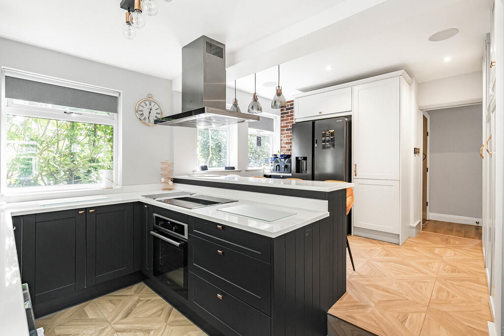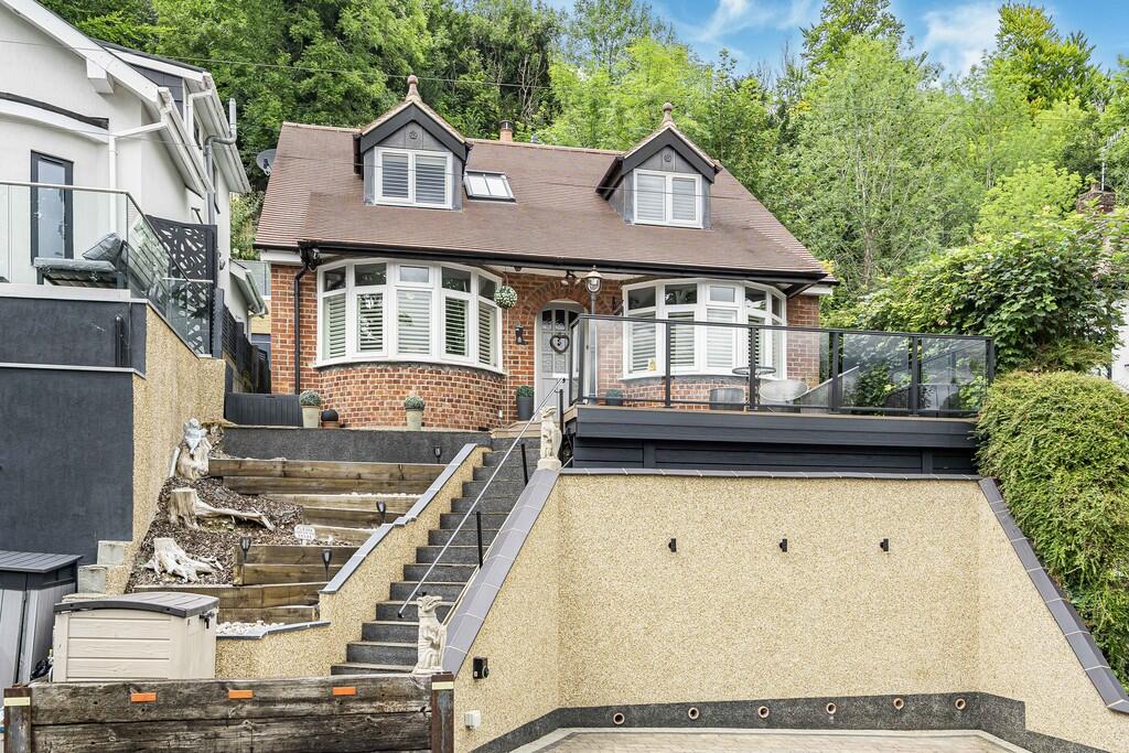 Nestled in a private road in Caterham a beautifully presented detached 4 bedroom chalet bungalow with outstanding views across the valley. It has been completely renovated to a very high standard. There are two lounges, a Wren kitchen with quartz top breakfast bar, downstairs toilet, four bedroo...