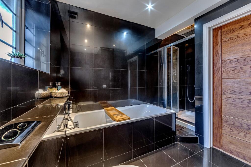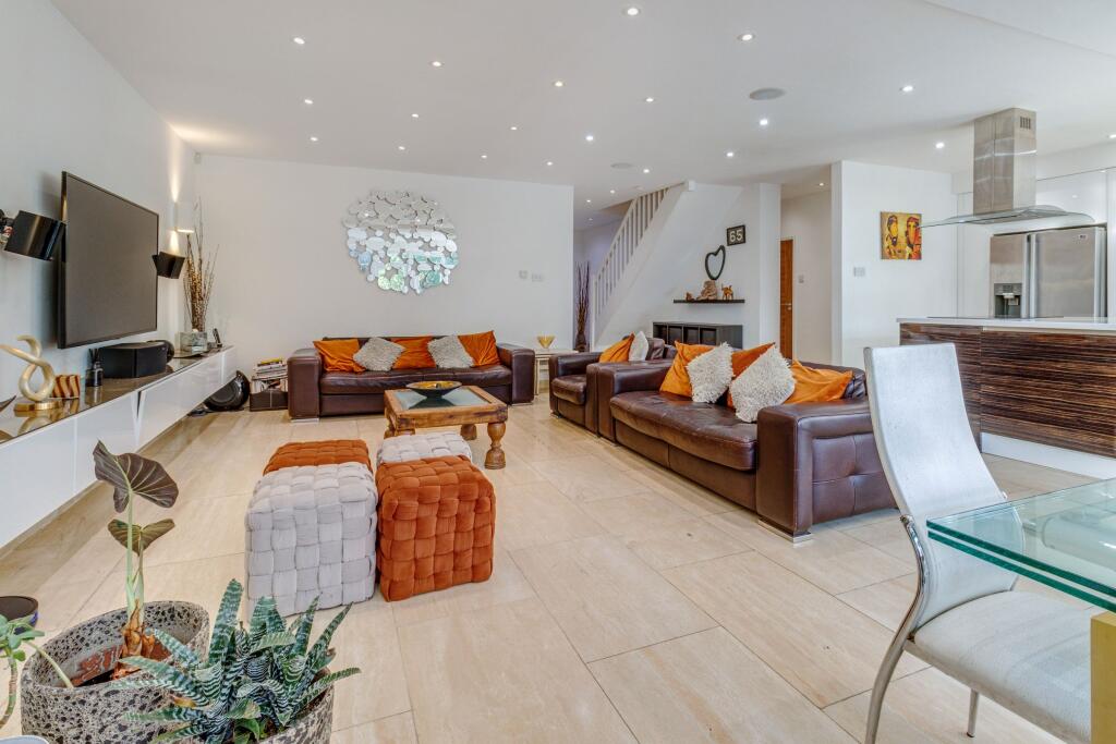 This is a four-bedroom semi-detached house in Highlands, Enfield. The property is in good condition and has a modern kitchen and bathrooms. It has a good-sized garden with a patio area. The property is located close to schools and transportation links. The listing price seems high compared to similar properties in the area.
