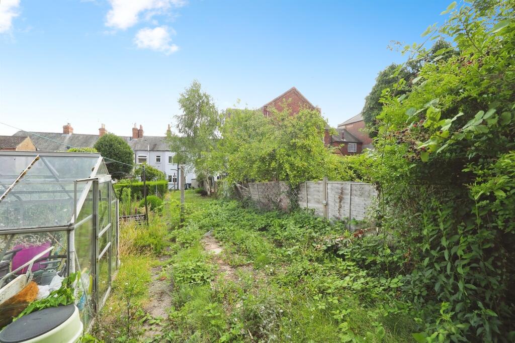 The property is a one-bedroom terraced house in Melbourne, South Derbyshire. It is located near schools and transportation links. The property requires renovation, but the price reflects this. The property includes a garden that needs landscaping.