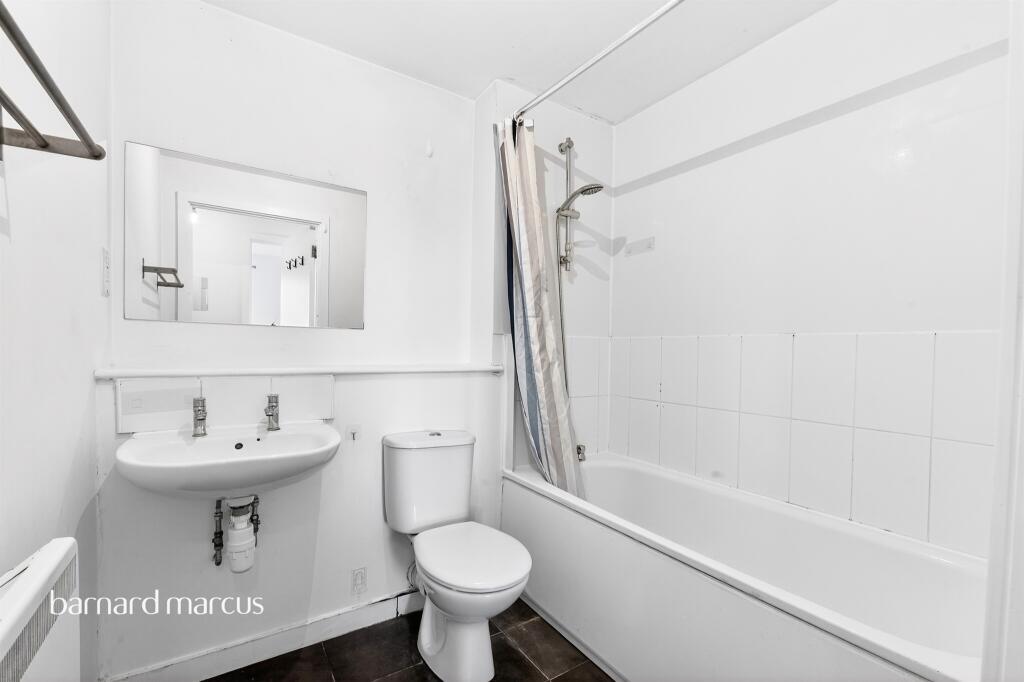 This is a two-bedroom flat located on High Street, Colliers Wood. The property is listed with Barnard Marcus. The flat appears to be in a reasonable condition, with modern fixtures in the living areas and bedrooms, but the bathrooms could use updating. The location is convenient, with good access to local amenities and schools. The asking price of £350,000 seems competitive for the area. The flat benefits from two bathrooms, which is a plus for a property of this size. The lack of outside space is a drawback. Overall, this property presents a good opportunity for first-time buyers or investors looking for a well-located flat in London.