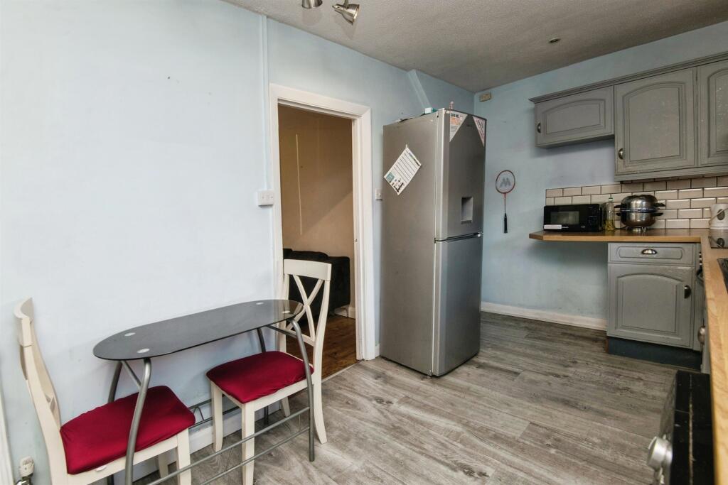 This terraced property is located on Kings Crescent, in Tiverton, Mid Devon. The property features 3 bedrooms and 1 bathroom, with a total square footage of 905. The property is located near several schools, including Two Moors Primary School and Wilcombe Primary School. The average price per square foot in the area is £320, while this property is listed at approximately £221 per square foot. Nearby properties on Kings Crescent have recently sold for between £125,000 and £185,000. The property includes a garden. The kitchen appears to have been recently updated. The condition of the bedrooms and bathroom suggest that the property may benefit from some modernisation.