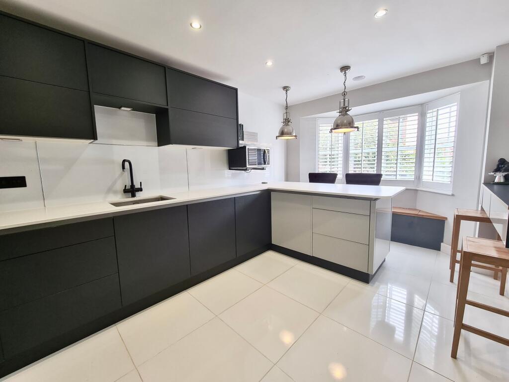 Stunning 4-bed semi-detached house on quiet road. Recently fitted kitchen, media wall, en-suite master, 3-floors family living, 4th bed/study. Under stairs storage, WC, garden, garage, driveway.