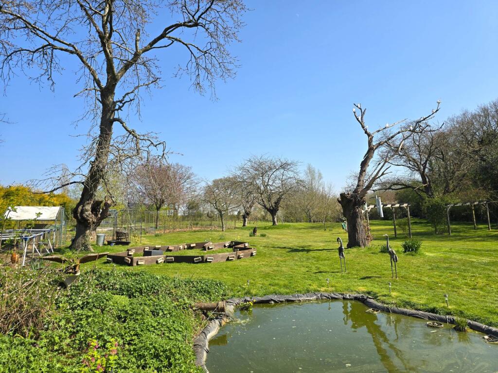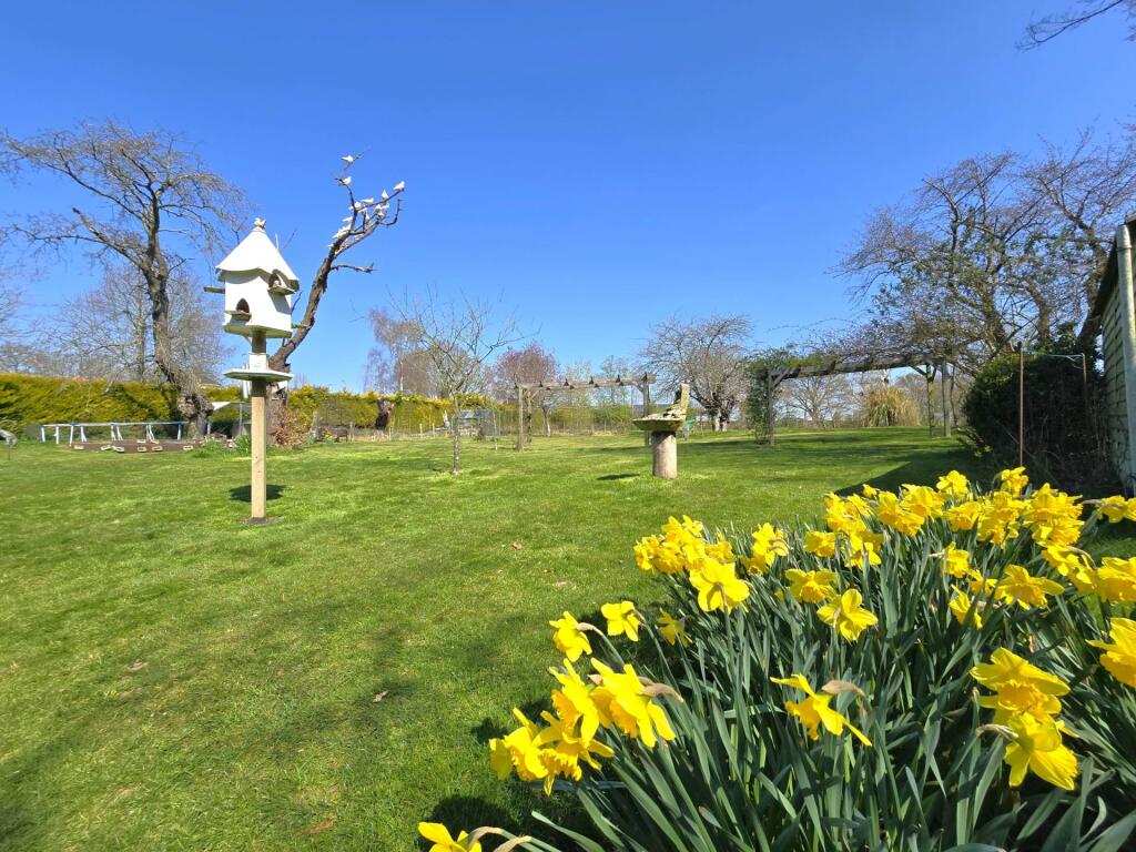 The property includes a substantial garden, offering ample outdoor space. The garden features various elements, including a pond, mature trees, and well-maintained lawns. This adds significant value to the property, particularly in a rural setting.