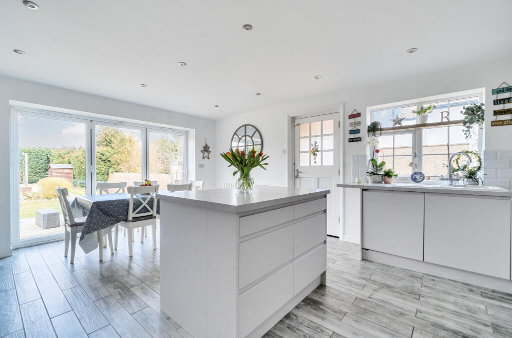Based on the provided images, the property appears to be in good condition. The kitchen and bathrooms have been recently modernised and are in excellent condition. The property has a traditional feel with some modern updates. There is evidence of a well-maintained garden with a patio area, suggesting a good land score.