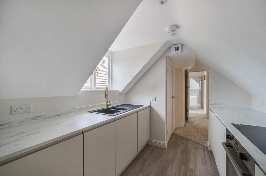 This is a one-bedroom apartment in Lyndhurst, New Forest. The property appears to be in good condition, with modern interiors. It includes a garden, which is a plus. The location is desirable, being in Lyndhurst and close to amenities. The price seems reasonable for the area, although the apartment is smaller than average.