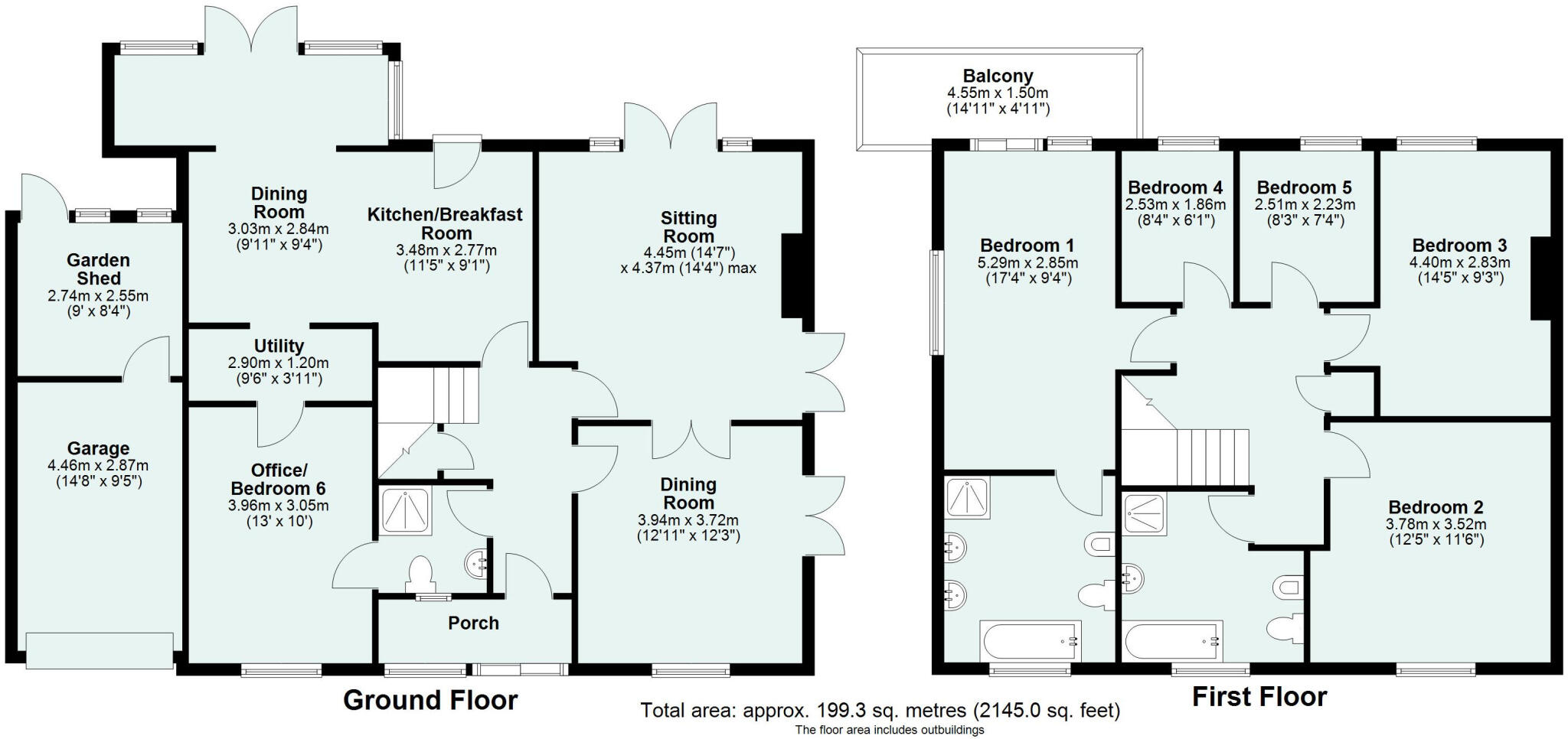 The property has a substantial garden, as shown in the images. The garden is well-maintained and offers a good amount of space for outdoor activities and relaxation. The size of 2,145 sqft is a good size for a family home in this area.